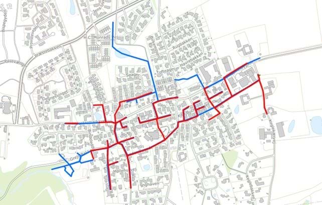 Figur 3: Viser placeringen af ledninger i forbindelse med separatkloakeringen af Grejs.